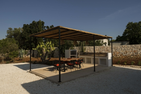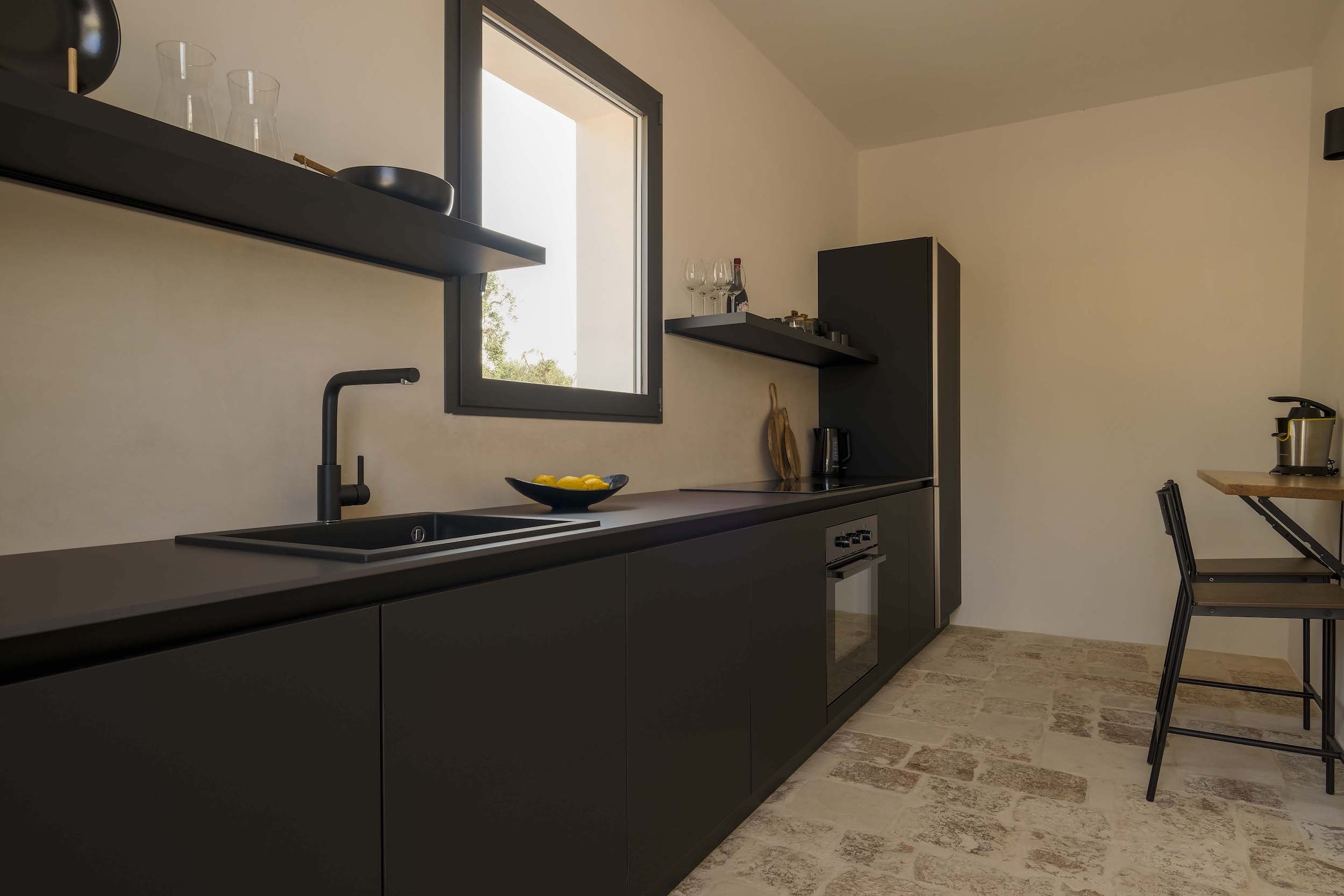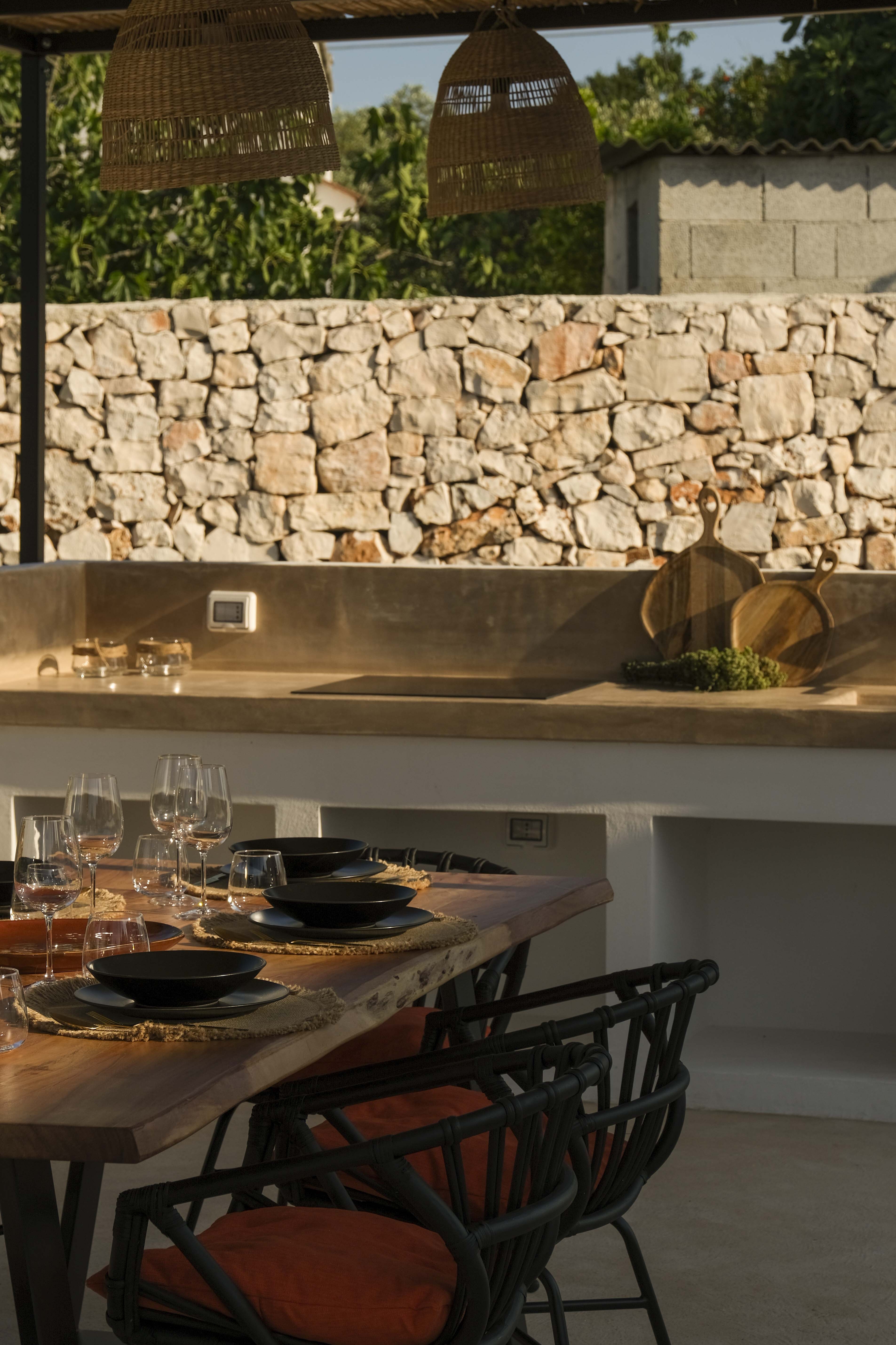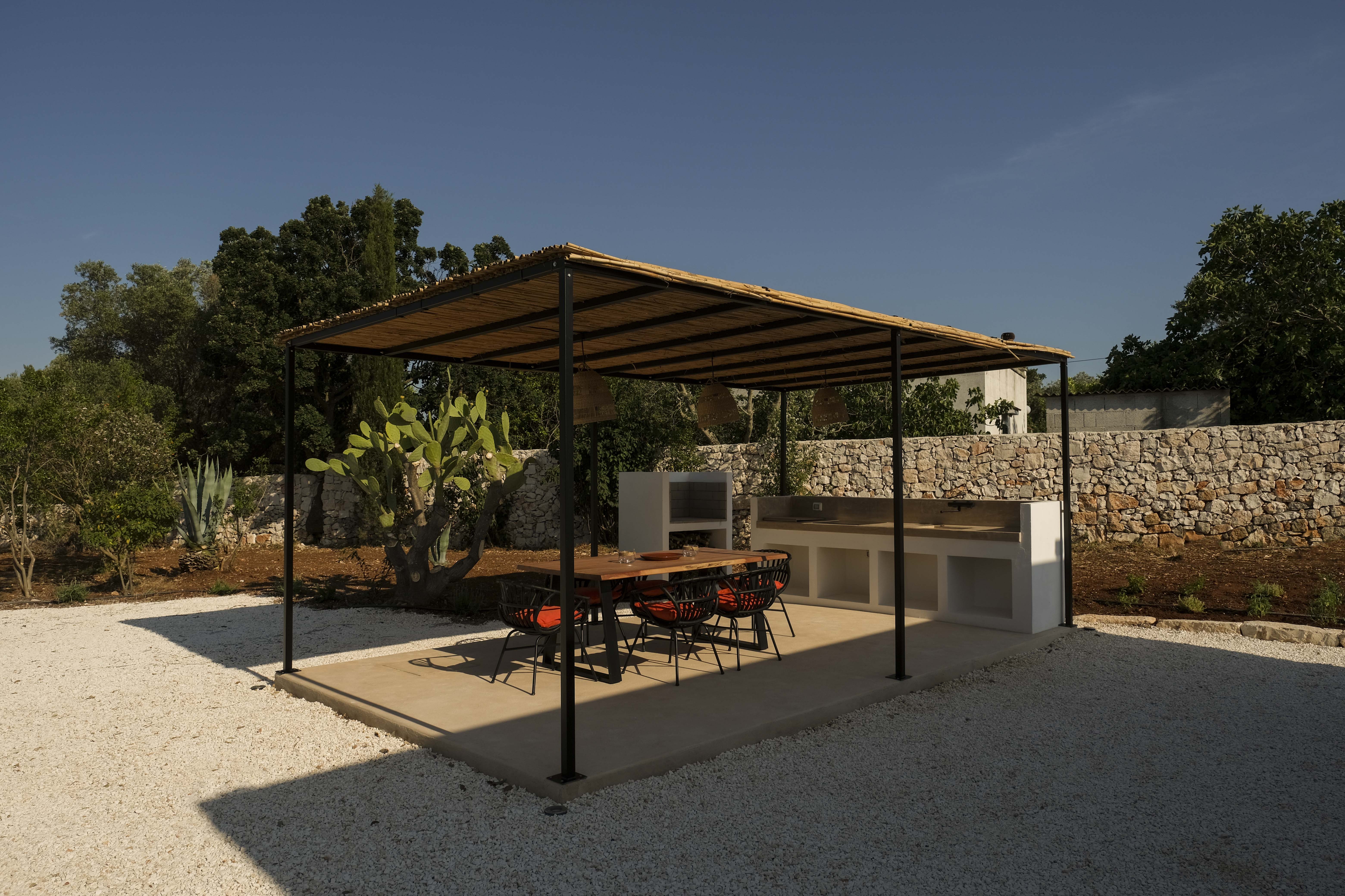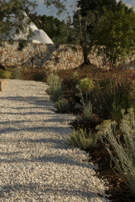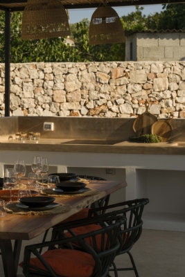 Tutta la proprietà è immersa tra ulivi secolari, alberi da frutto, piante mediterranee e muretti a secco, creando uno scenario naturale di rara bellezza.