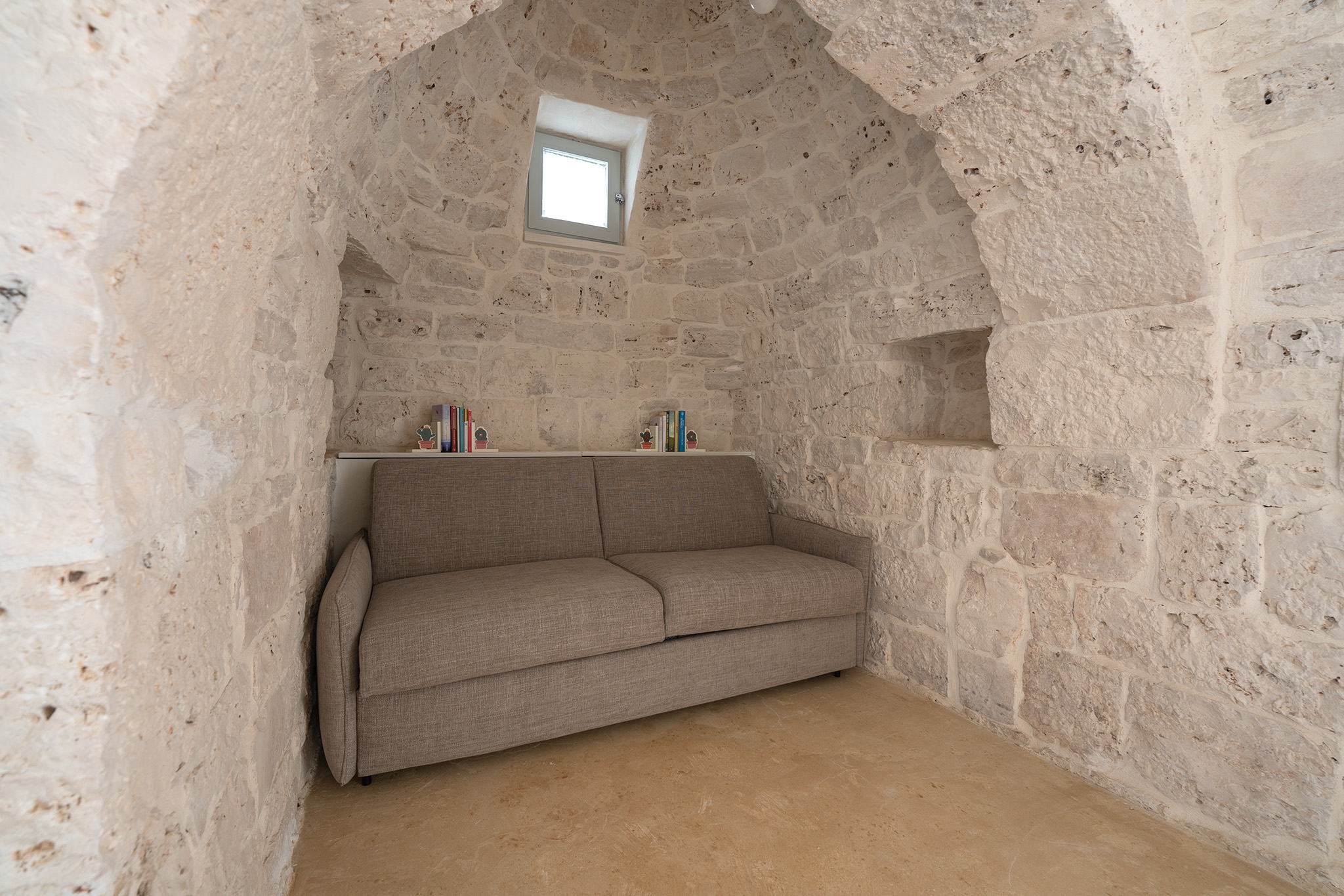 - 1 zona living con comodo divano letto (per 2 persone) e cucina.