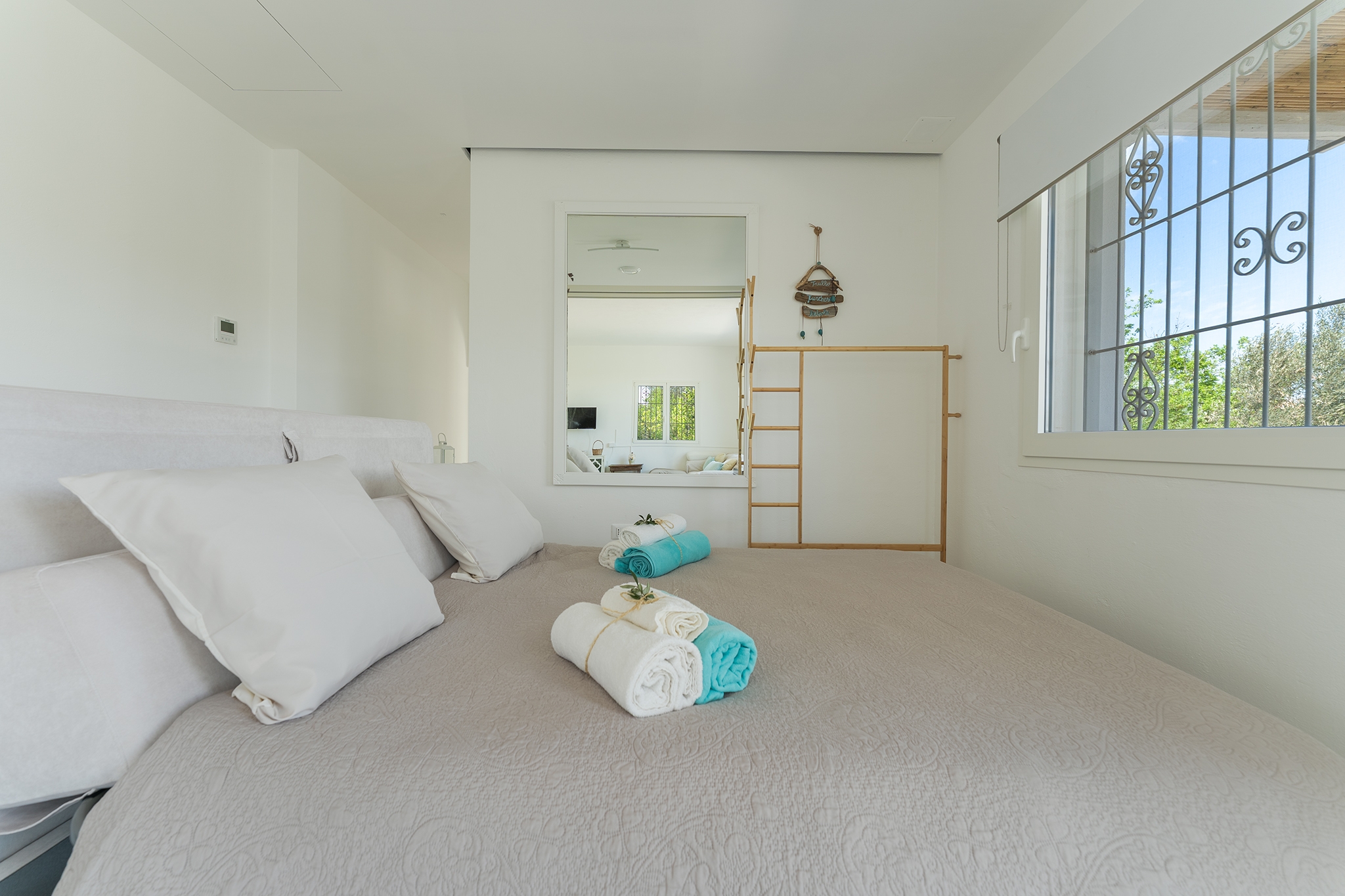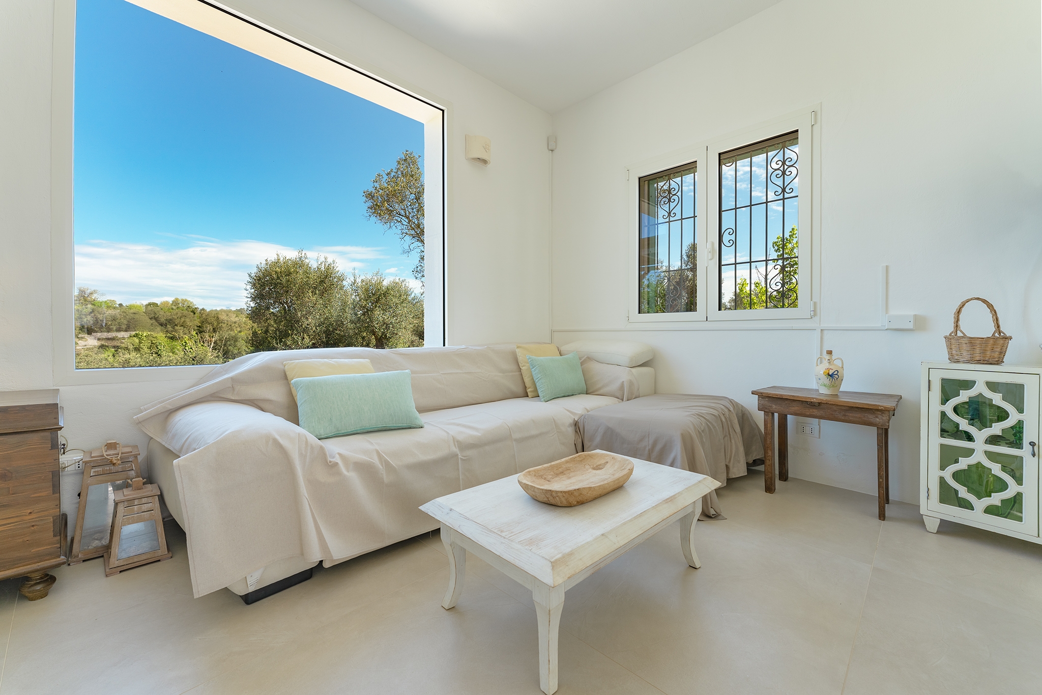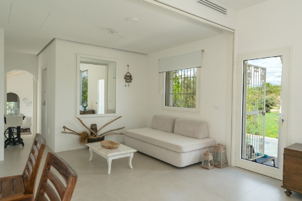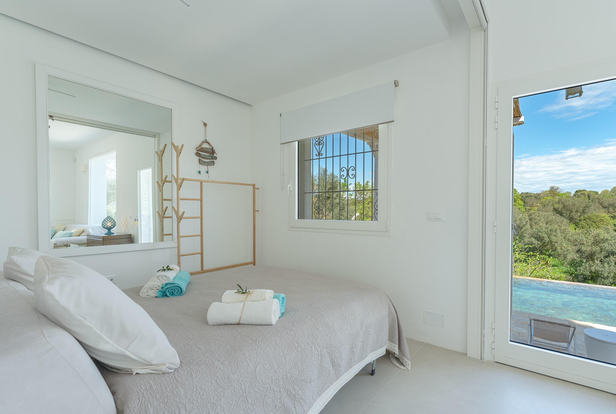 LAMIA PANORAMA: è un ampio spazio dotato di aria condizionata, con una enorme vetrata che si affaccia sulla piscina e sul panorama della campagna di ulivi, ospita la zona living con angolo cucina e, con il suo divisorio a scomparsa, ospita anche una camera matrimoniale per 2 persone con divano letto e bagno privato;