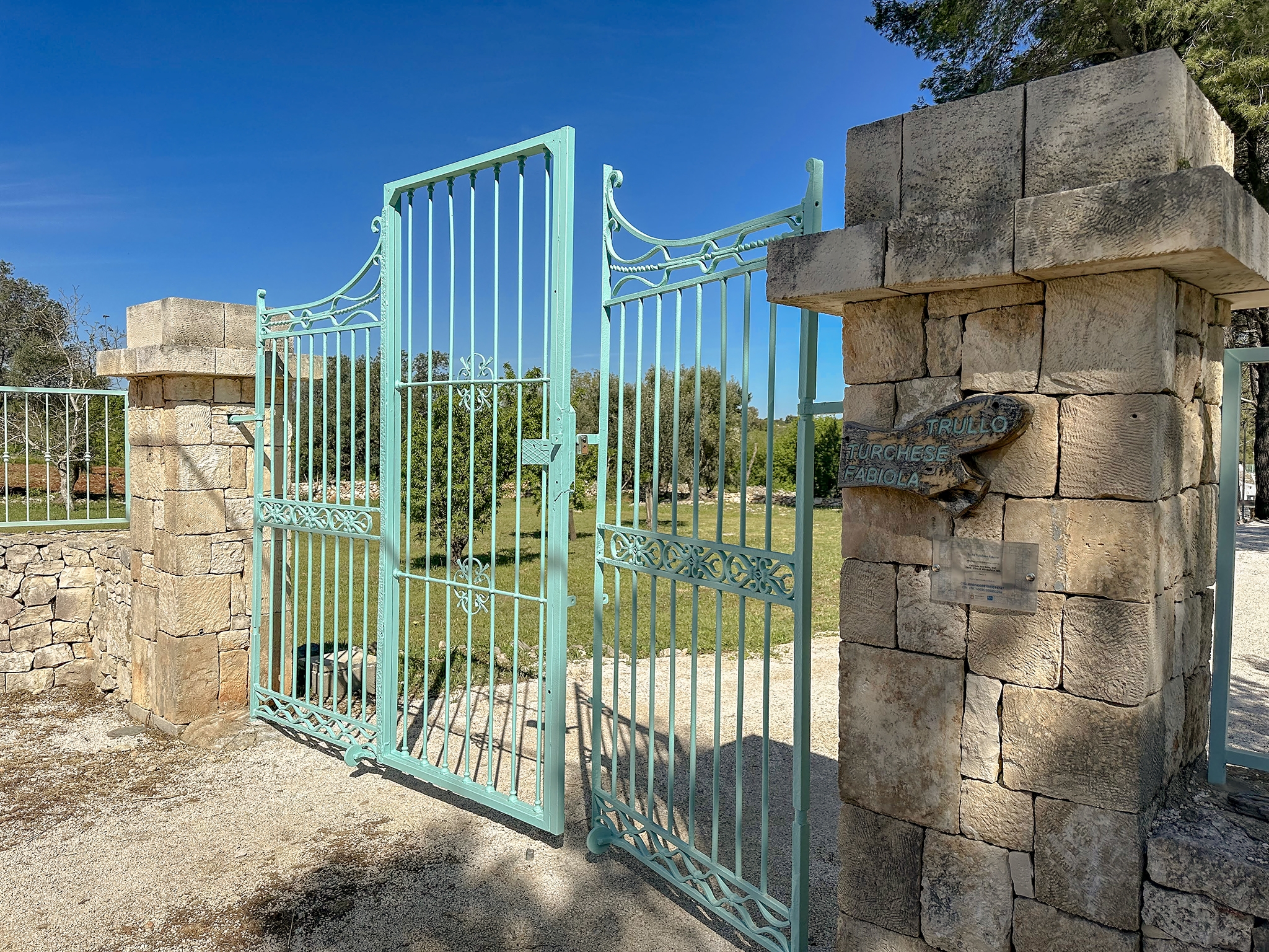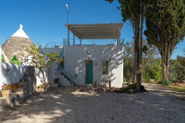 Situato in Valle d’Itria, nell’agro di Ceglie Messapica, la cittadina che vanta il riconoscimento di "città d'arte e terra di gastronomia", tra le più antiche della regione, e a pochi km da Ostuni, il “Trullo Turchese Fabiola” è un bellissimo e antico complesso formato da due trulli a sei coni e una lamia, immerso in un ettaro e mezzo di terreno con ulivi e alberi da frutto, tra pini di Aleppo e piante di fico.